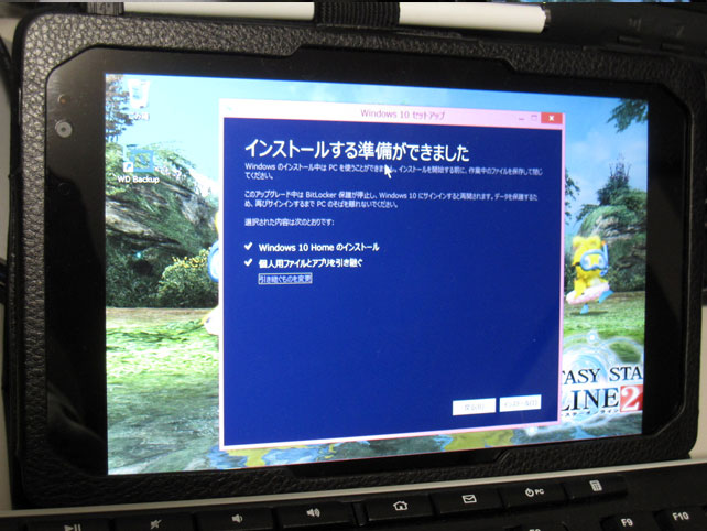 ずいぶん前に予約をしていましたが、Venue 8 Proへアップグレードできるよ~のお知らせが全く届かないので、Windows 10 のダウンロードから行いました。(ドレダケコンデルノヤラ…)