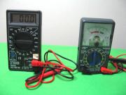 デジタルでは何オーム?導通?とか判断するのが数字が変わって面倒です あとアナログだと電解 コンデンサーの凡その容量を(テスター棒を交互に電極に接触させて)測定することが出来ますね