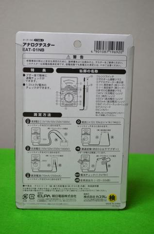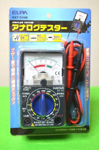 選んだのはELPA(朝日電器)の電子回路テスターです アマゾンでアナログテスター、格安テスターを探したところ、ELPAとOHMの2機種がありました どちらが良いのか悩みましたがメーター表示を見てELPAにしました OHMのはメーターが玩具的だったのでスルーしました 当機は中国製です