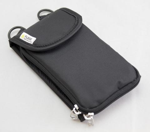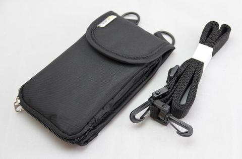 スマホを入れる場所は両開きのジッパーになっているので、どの位置にストラップが付いていても対応できます。