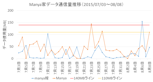 次の表はManya家’15年7、8月のデータ通信量推移です。