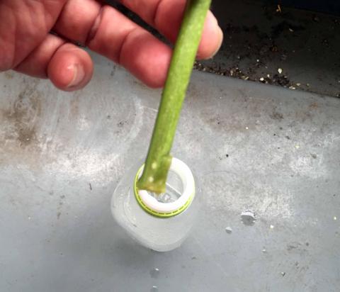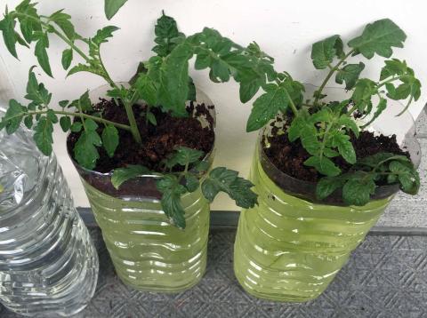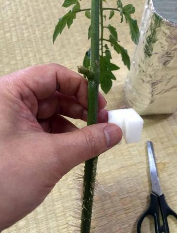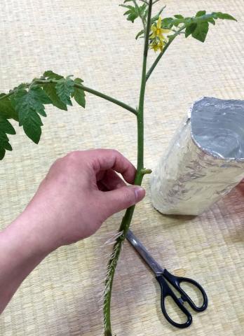 まずは、自分の家にあるトマトの脇芽を積んで、ペットボトルに水を入れて物の中に1週間入れて放置する