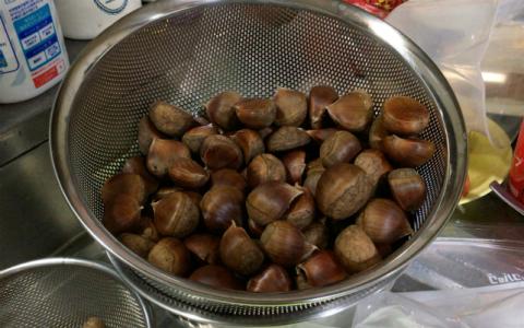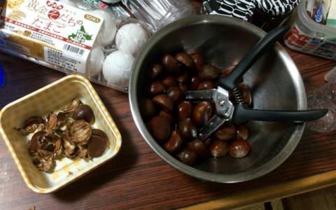 やや小振りの栗ですが、裏庭で採れたものではなく、買った物らしいです。