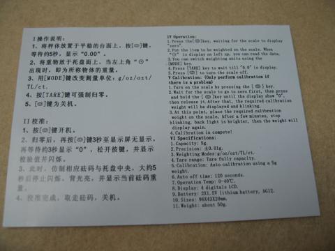 電源を入れる----ゼロ表示を待つ 0.00----次に電源ボタンを押し続ける----ゼロ0が表示されたら 指を離す---5.00が点滅表示されたら---5gのウエイトを載せる----5.00の点滅が終わったらキャリブ レーション終了です