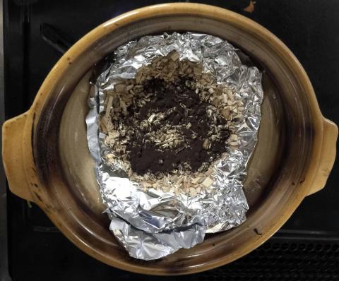 これにピートパウダーを混ぜて火を付けます、分量はチップ3つまみ、ピートパウダー1つまみです
