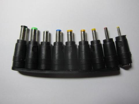これだけあると,一般的な3-18V程度のアダプタはほぼ網羅できます.