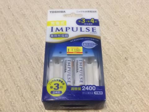 そこでたまには他のブランドの製品を使ってみようと思い、少しだけ安くなっていたTOSHIBA IMPULSEの単3型高容量タイプ(2,400mAh)を買ってみることにしました。この容量はeneloop pro(2,450mAh)対抗ということになり、少し標準型のeneloopとは性格が違う製品というべきものです。