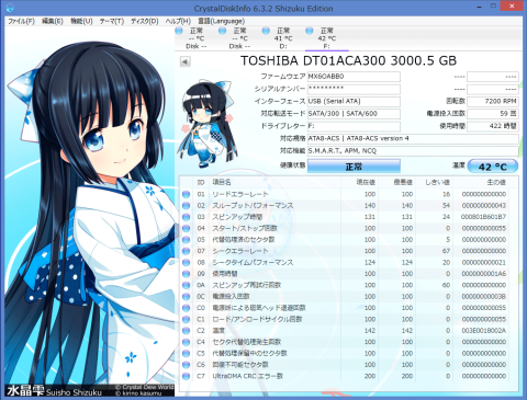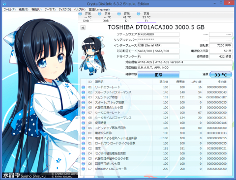 採用しているハードディスクは東芝のDT01ACA300 [3TB SATA600 7200]です。