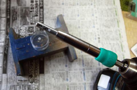 しかしながら、よい子の皆さんは逆さまにして当て木の上で穴を開けましょう