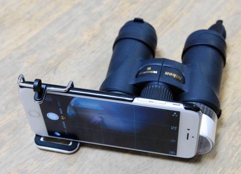 上がi-Phone6+で、下が MONARCH 7 8X30 +手製アダプター+i-Phone6+です