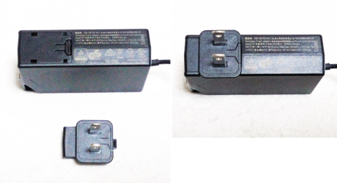 ACアダプタの蓋をスライドして外し、対応のプラグと差し替えます。