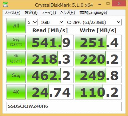 アイテム情報から型番が消えて「インテル(R) SSD 535 シリーズ」という事で、M.2とSATAのモデルが同じところに登録されています。こちらはSSDSCKJW240H6でM.2 240GBのモデルです。同じところに登録されているインテル® PC GAMING REVOLVER REVIEW - BULLET.4の2.5インチ SATA(6Gb/s) 240GBのモデルはSSDSC2BW240H6です。