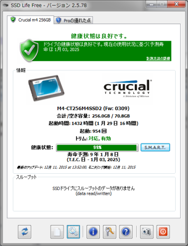 今回、Crucial m4 SATAのステータスを見ようと