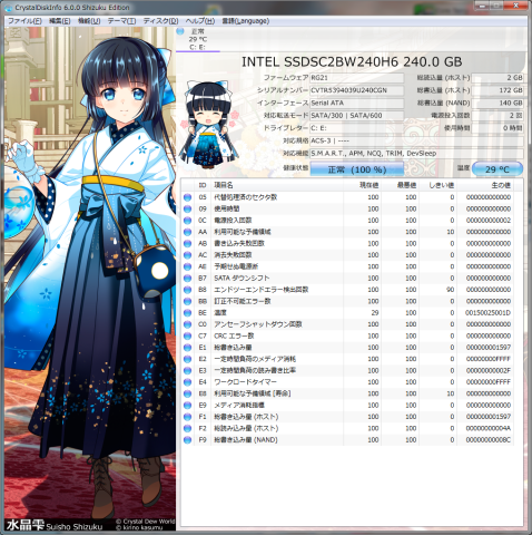 CrystalDiskInfoを起動したら、