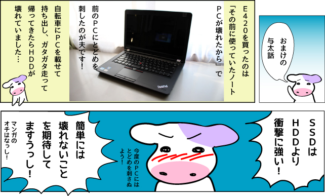 E420は、もともとは私の持ち運び用サブマシンとして購入したのですが、現在私の持ち運びはもっぱらこれ。