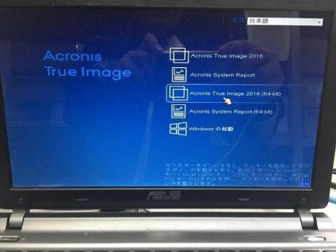 TrueImageは起動ディスクを作成してDVD(またはCD)から起動してやれば簡単にバックアップを取ることができます。