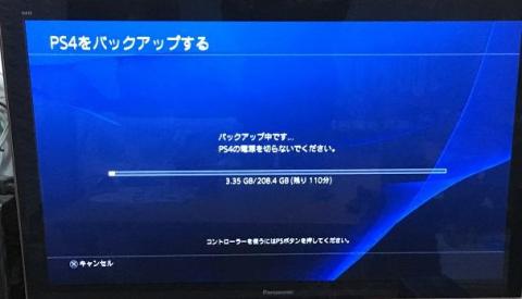 私のPS4はすでに約200G使ってたようですが、バックアップに約2時間かかりました。