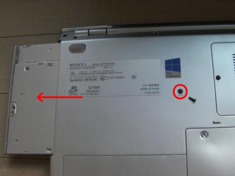 ドライブ固定用のネジを外してから、光学ドライブを引き抜きます。