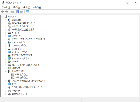 デバイスはほとんどが自動で認識、動作しています。不明なデバイスの2つは他のソニー製品との連携機能のようですが、使っていなかったので特に問題はなさそうです。また全部消してクリーンインストールしたので、プリインストールされていたソフトや無料提供されていたのソフト等は使えなくなりました。