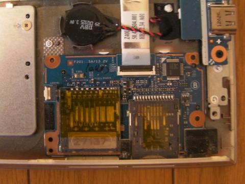 2.5インチストレージを搭載したモデルは青色辺りにSATAのデータと電源が一緒になったケーブルが付いているようですが、mSATAストレージのモデルには、必要ないという事で実装していないようです。マザーボード側の端子が特殊なものなので、汎用的なものは使えそうもありません。また端子がかなり細かいし、配列等の仕様がわからないので、自作したり直結するのは難易度が高そうです。