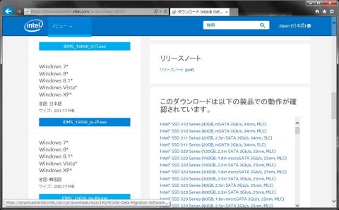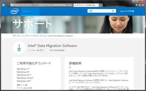 そして、データ移行のため、インテルのサイトから「Intel® Data Migration Software」をダウンロードする。