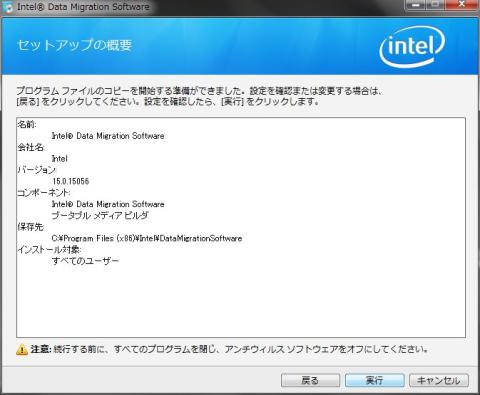 インストールが完了したら「Intel® Data Migration Software」を起動する。