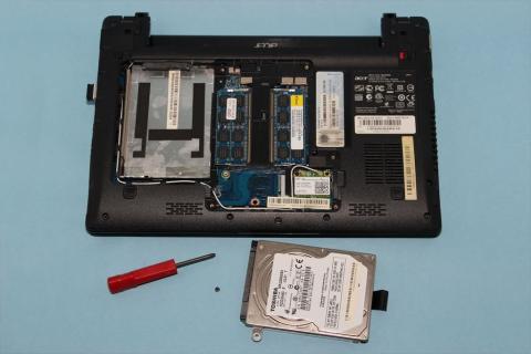 AS1830ZのHDDは、ドライバーのみで取り外し可能なので、小型の+ドライバーを用意した。