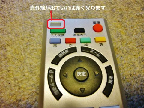 最近の赤外線リモコンは発光部を見ても発光しているのか判らない領域の赤外線を使用している?と思われるのでリモコンが壊れているのかが分かり辛い。