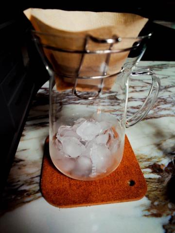 メモリまで氷を入れて、コーヒー10gに対して90ccのお湯を注げばあっという間に