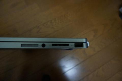 ちょっと見づらいですね。各サイドにUSBが1つずつ、右サイドにはSDカードスロットと