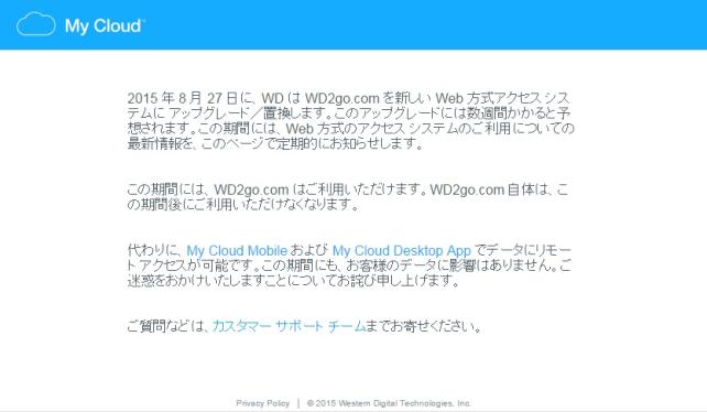 ※20150830時点で、そのリンクが無効になってしまった。どうやら、このリンクだとWD公式ページを経由したアクセスになるため、WDのメンテナンスの影響を受けてしまったようだ。メンテナンス完了次第、もう1度確認してみようと思う。