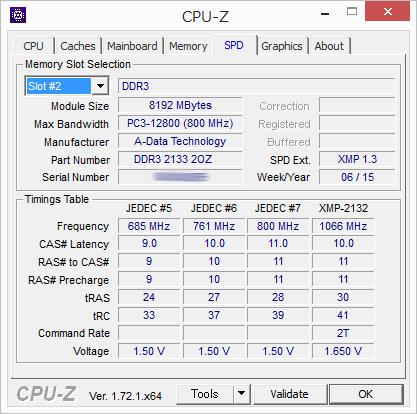CPU-ZのSPD情報です。