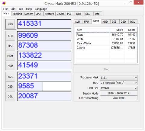 でCrystakMarkを走らせてみました。