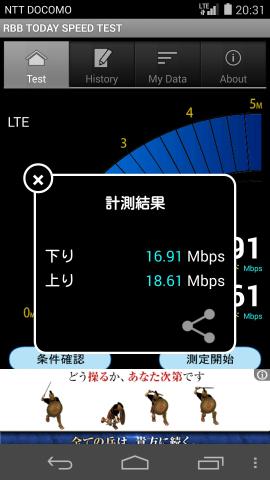 私の自宅ではLTEの入りがよくはありませんが、極端に遅い結果もなく