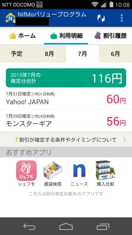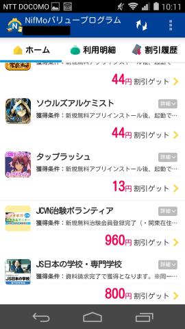 まず最初は、NifMoバリュープログラムでアプリの中からゲームやyahooなどの