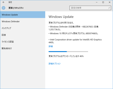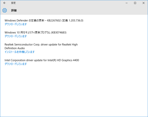 そして、早速Windows Updateとして、Defenderとセキュリティの更新、さらにIntel CPUの内蔵GPUの更新があった: