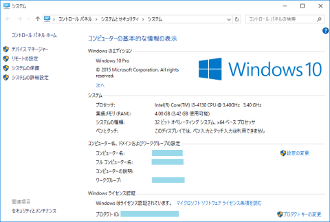 これは、公開前のInsider PreviewのTHI Professional 10240と全く同じだ。