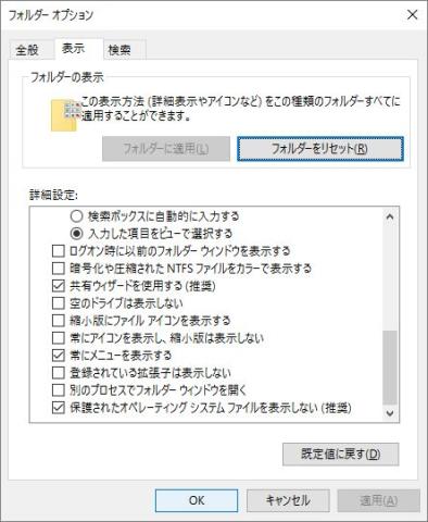 ・フォルダーオプションで隠しファイルと拡張子、メニューを常に表示する。