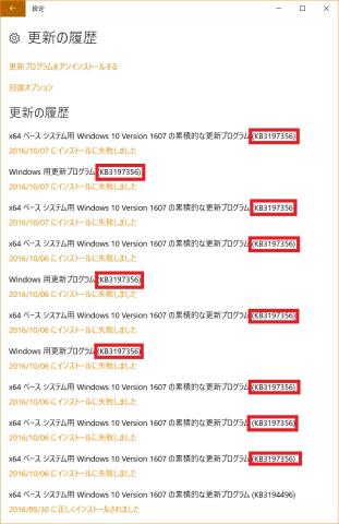 ところが、Windows Update KB3197356について、自分のところだけProFessional 64bit版の更新が上手く行かず、何度もトライしている事が分かりました。