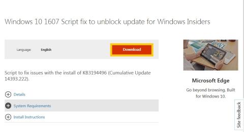 この更新プログラムでは前回の「KB3194496」を適用した後に「Microsoft Edge」で一部のWebサイトが読み込めなくなっていた問題が解決されているとのこと。