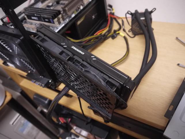 結局、マザーボードを取り外してラジエーターと一緒にスライドさせるような形で固定位置まで持っていきました(^_^;)