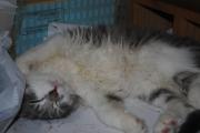対外マンションの会談でうずくまって待っていますが、探すのがとても苦労する猫です。