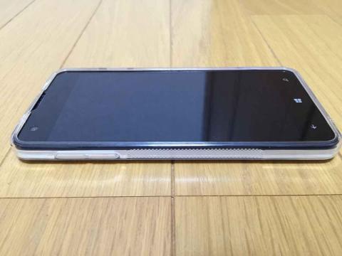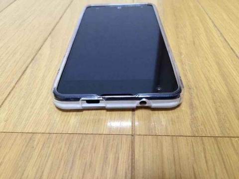 装着した感じです。写真ではわかりにくいですが、結構パッツンパッツンのサイズなので、簡単に外れたりはしないでしょう。その反面、ガラスフィルムを貼った場合、端を押さえ込むようになるので、ひょっとしたらガラスフィルムが浮いてくるかもしれません。また厚みのあるガラスフィルムだと、このケースが装着できないかもしれません。