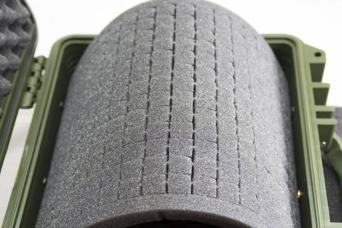 納め方を決めたら、まず下側になるウレタンを入れるモノの形に合わせ千切っていきます。