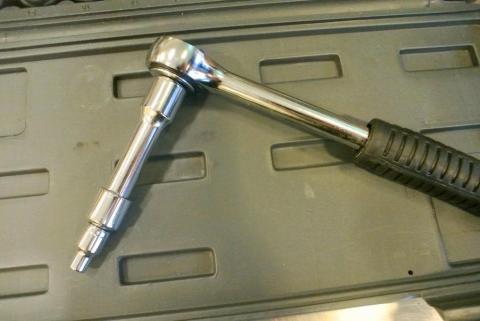 標準のラチェットハンドルにも、エクステンションや、各種アダプターを随時利用して