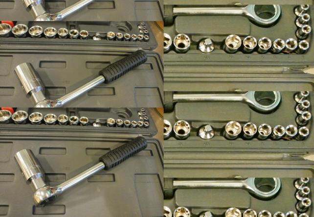 このレベルのケースでも、各工具を順番に並べて納める力があるので、後により良いピッドやボックスレンチを個別に買い増したとしても、ケース自体は ずっと利用できますよ。