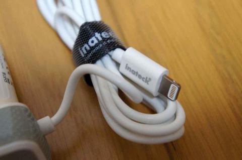 本体から延びるLightningケーブルの根元もしっかりしていて、少々雑に扱っても壊れるようなことはないでしょう。収納に便利な結束バンドで巻かれています。
