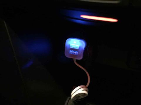 アクセサリーソケットに接続して状態です。ブルーのLEDが点灯します。