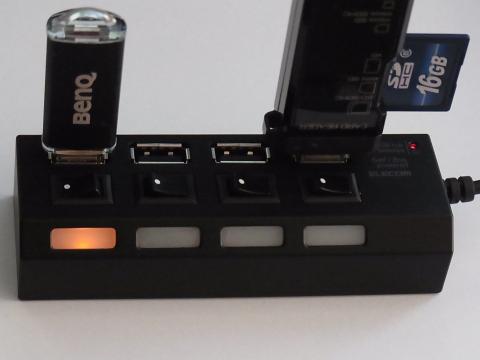 各USBポート毎にスイッチとランプがあるのでわかりやすい。ランプは落ち着いた色で太陽光に当てると見えないくらいで丁度良い。