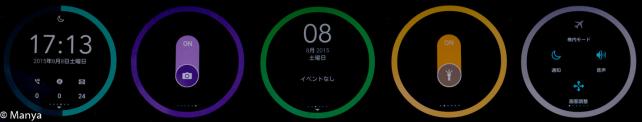左から時計/カメラ/カレンダー(予定)/ライト/クイック設定